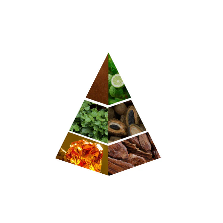 The scent lingers with a rich, sensual base of amber, smoky oud, and creamy sandalwood