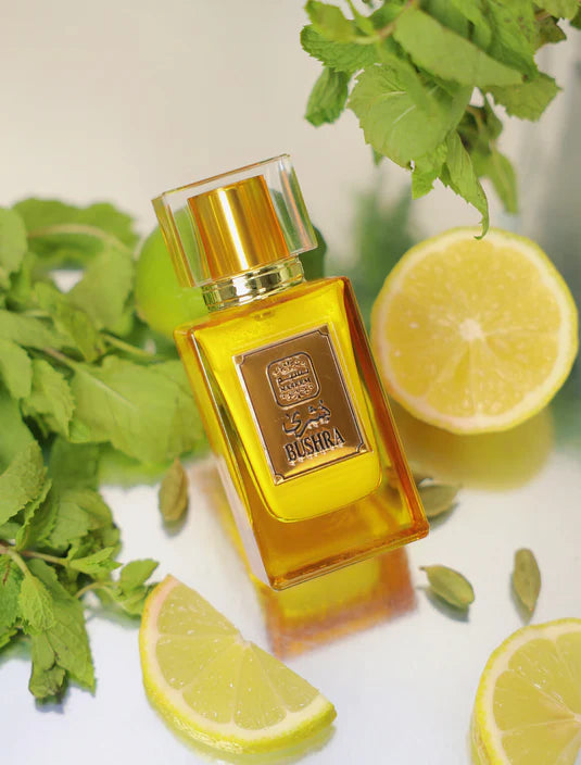 Bushra brings energy to life; its combination of sweet and sour is explosive, making any occasion fun and exciting. The fresh and uplifting citrus gives way to the sweetness in the heart which is complemented by the warm amber in the base, slowly intoxicating its user.