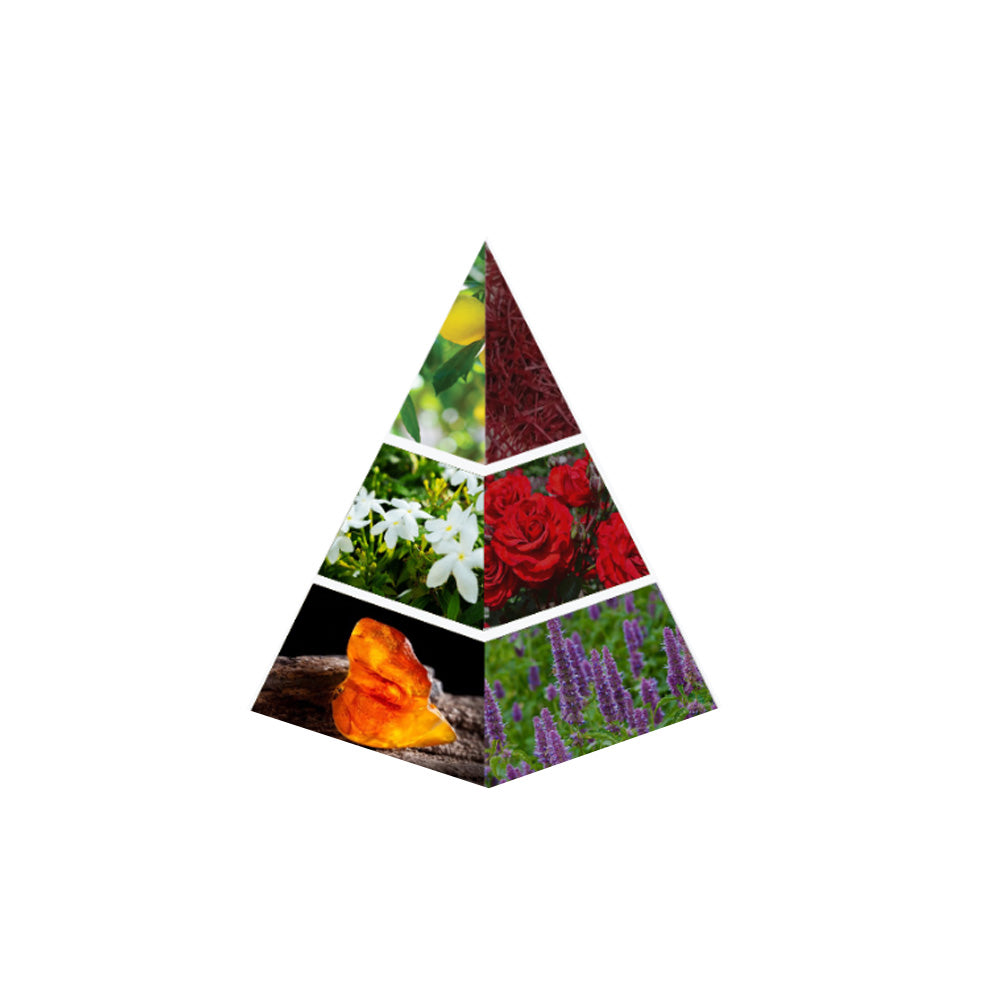 Bathed in the gilded glow of saffron and the sunlit fire of tagetes, the fragrance awakens like the first stroke of dawn upon silk. Its heart unfurls in opulent whispers rose and jasmine bloom with regal grace, while a touch of leather and lily weave shadows of intrigue, a dance of softness and strength. As it settles, the earth speaks in deep, resonant tones patchouli, cedarwood, and sandalwood burnished with the molten warmth of amber.