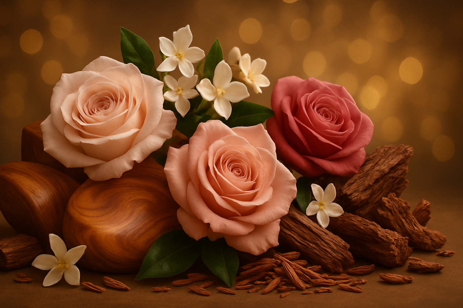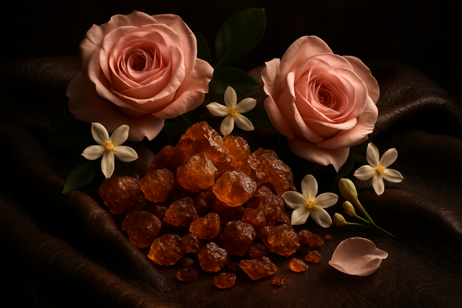 A fragrance rich with labdanum, giving it a woody and leathery scent that is powerful. The floral rose and jasmine at the heart gives the scent an effortless charm