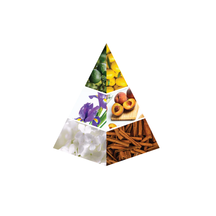 This fragrance opens with a lively and zesty combination of bergamot, lemon, mandarin, and fresh citrus, offering an invigorating burst of brightness. The heart unfolds with a blend of delicate florals and fruits, featuring orris, rose, raspberry, peach, and jasmine, creating a sweet, floral complexity. The base is warm and earthy, with rich notes of moss, musk, vanilla, and sandalwood, adding depth and softness. A perfect harmony of citrus freshness, fruity florals, and grounding warmth.