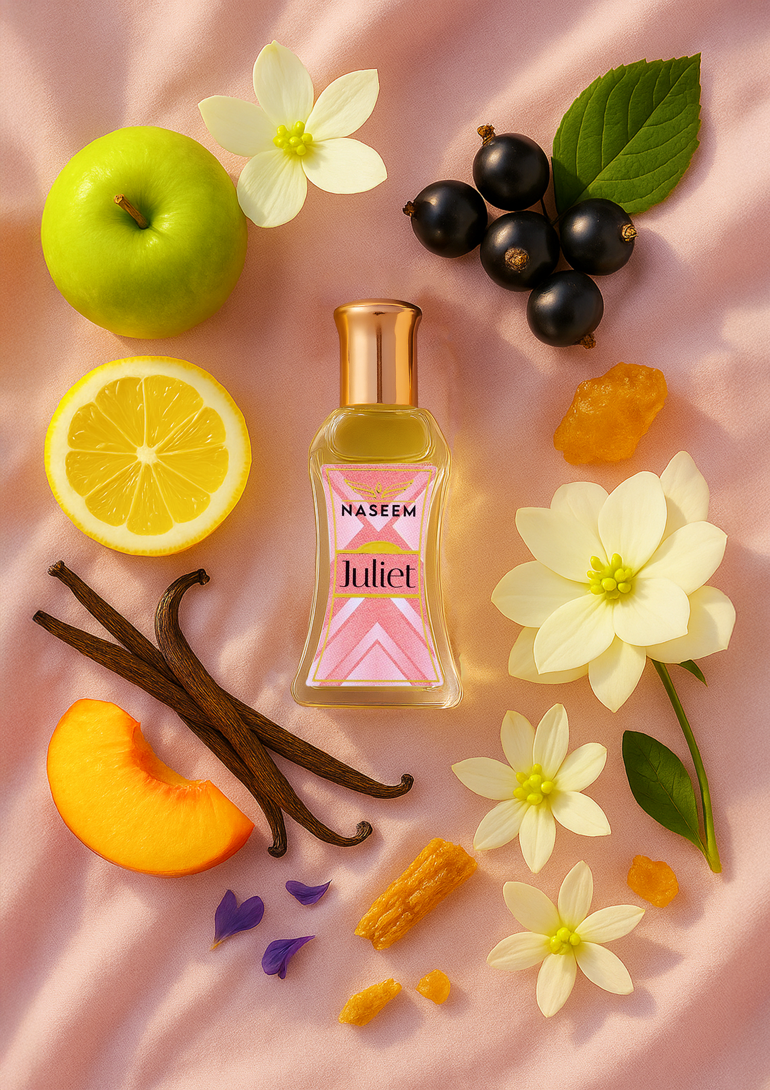 This fragrance opens with a lively and refreshing burst of jasmine, juicy apple, blackcurrant, and lemon, creating a bright and fruity introduction. The heart blooms with a soft floral blend of ylang-ylang, green notes, magnolia, and peach, adding elegance and sweetness. The base is warm and comforting, with amber, musk, and vanilla, leaving a smooth, sensual trail that’s both playful and sophisticated.